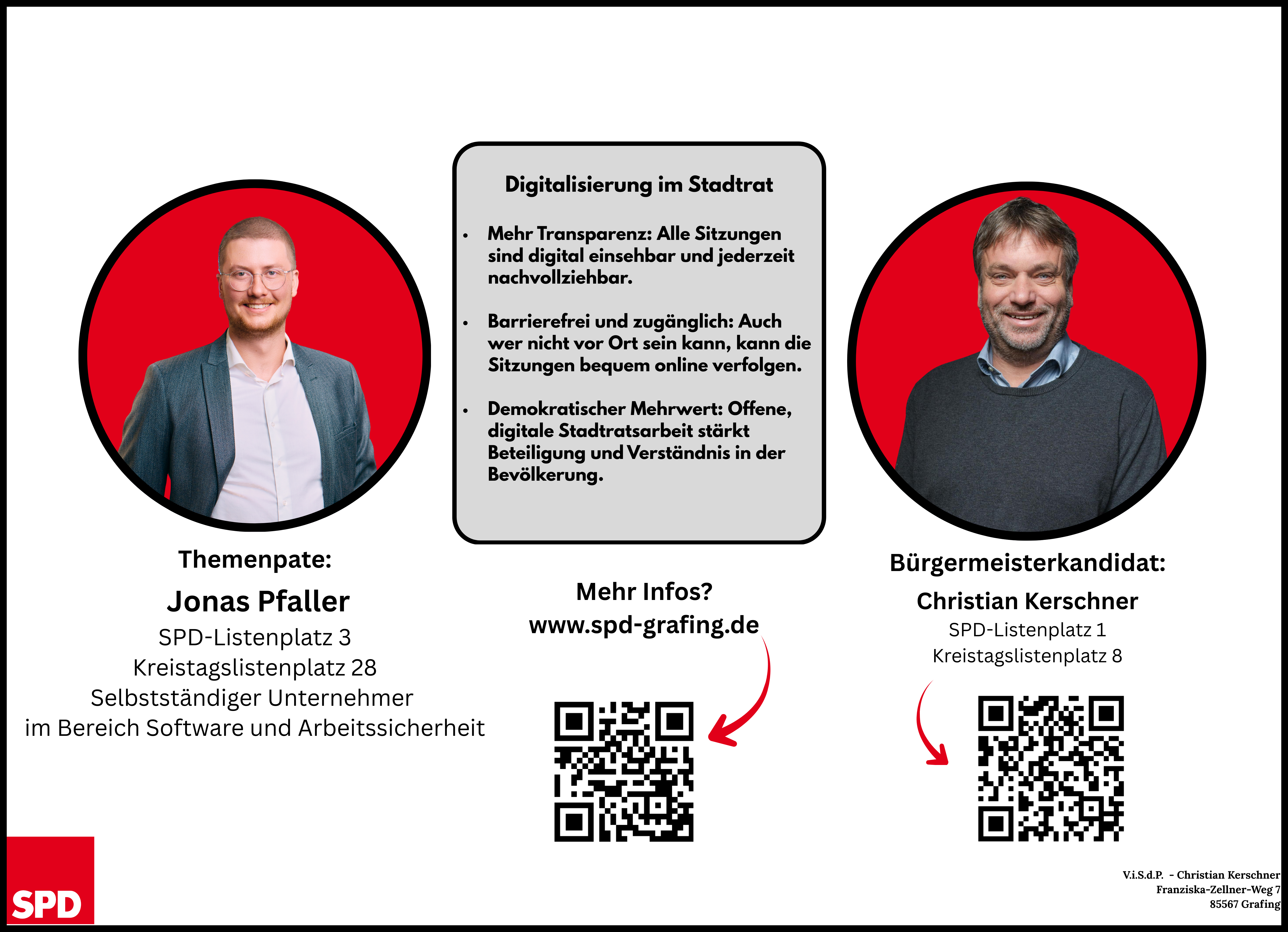 Zur Kommunalwahl am 8. März 2026 haben Themenpaten aus dem Kreis unserer Stadtratskandidatinnen und -kandidaten gemeinsam mit dem Ortsverein und unserem Bürgermeisterkandidaten Christian Kerschner Standpunkte zu zentralen Themen entwickelt.